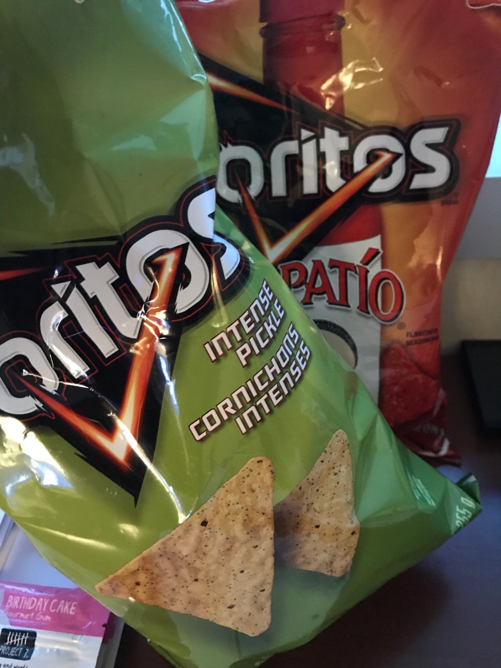 Because I am basically a terrible person and the gods love to taunt me, two bags of Canadian Doritos – why do those Canucks get the best chips?! – are delivered to my desk.